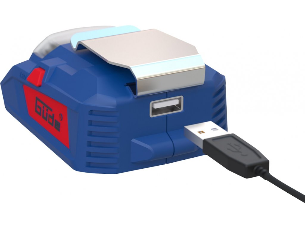 Praktický adaptér, umožňujúci napájanie (nabíjanie) malých elektronických zariadení pomocou akumulátorov radu 18 V E3 AKKUSYSTEM-GRUPPE.