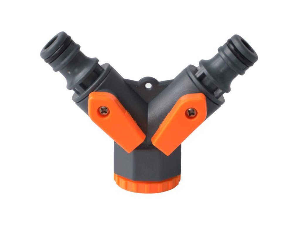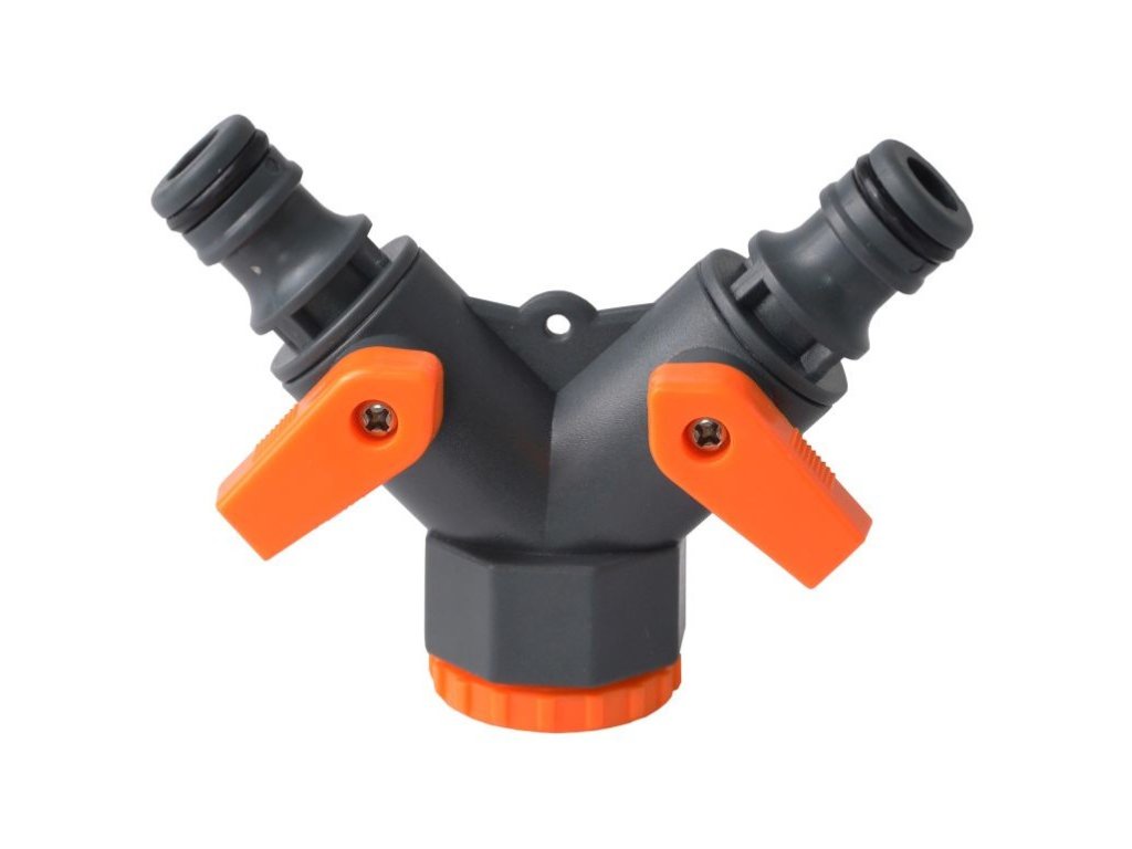 distribútor umožňuje pripojenie dvoch záhradných hadíc k jednému kohútiku súčasne