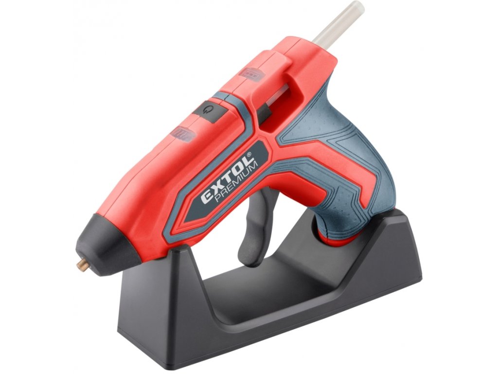 Aku lepiaca tavná pištoľ je určená na roztavenie a nanášanie tavného lepidla za účelom rýchleho zlepenia papiera, korku, dreva, kože, textílie, umelej hmoty, keramiky atď. Páčka mechanického posuvu umožňuje citlivé, plynulé a presné dávkovanie roztaveného lepidla na požadované miesto. Neprítomnosť napájacieho kábla zvyšuje komfort pri používaní a slobodu pri pohybe. Pištoľ je vybavená nabíjacou základňou do ktorej môže položiť pištoľ v čase keď ju nepoužívate. Po vložení pištole do základne sa pištoľ začne okamžite nabíjať a tým sa predĺži doba, po ktorú ju možno používať. Vďaka Li-ion akumulátoru je možné pištoľ kedykoľvek dobíjať bez toho, aby sa tým znižovala kapacita akumulátora. Li-ion akumulátor stráca energiu vplyvom samovybíjania veľmi pomaly a vydrží dlho nabitý.