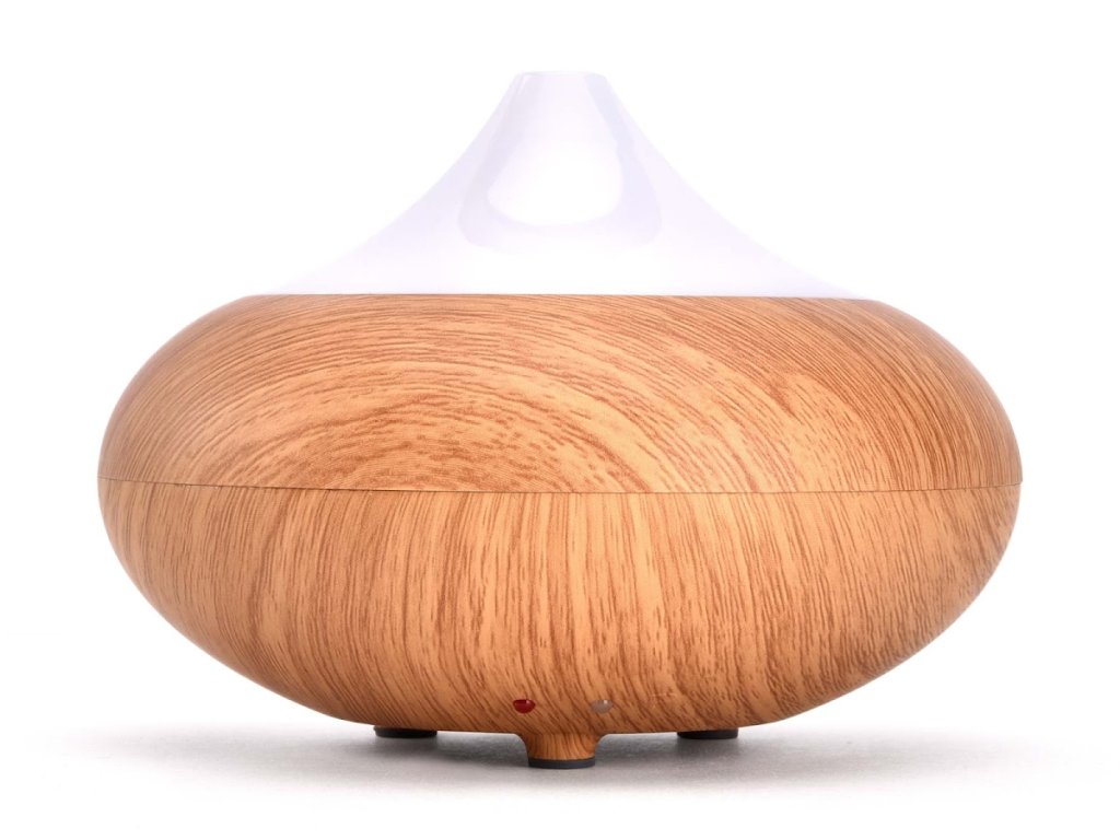 Zvlhčovač vzduchu s difuzérom v dizajne prírodného dreva (imitácia dreva). Aromatizuje a zvlhčuje vzduch kombináciou účinkov vodnej hmly a esenciálnych olejov. Pomocou jemného ultrasonického vlnenia rozkladá esenciálne oleje na extrémne malé mikročastice bez toho, aby ich zahrieval. Oleje si tak zachovávajú pôvodnú vôňu aj liečivé účinky. Aróma difuzér Vám pomôže vytvoriť z každej izby Voňajúcu oázu a navodiť relaxačnú atmosféru.