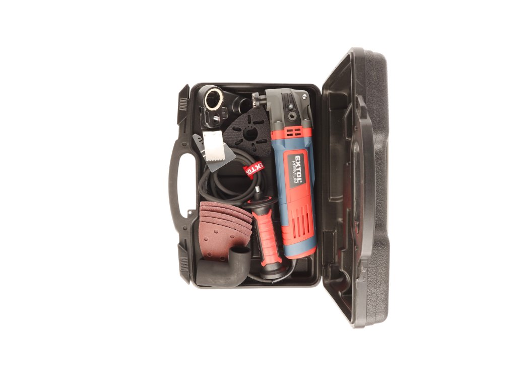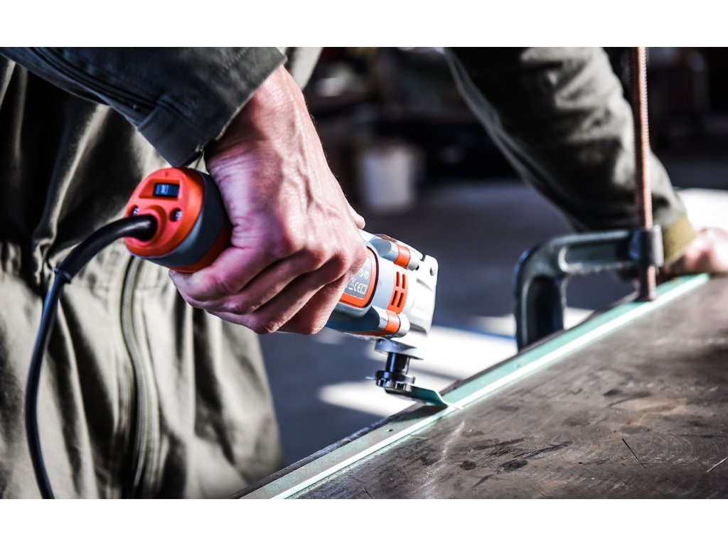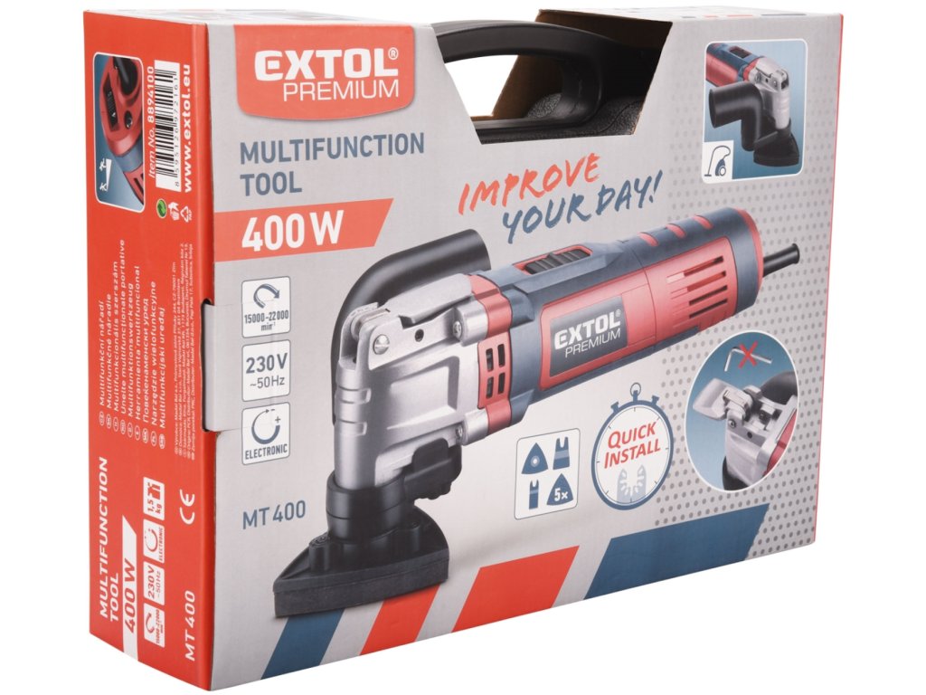 Multifunkčné oscilačné náradie je určené na rezanie a oddeľovanie drevených materiálov, umelej hmoty, sadrokartónu a mäkkých kovov (napr. medi, hliníka, nekalených klincov, zliatin mäkkých kovov), ďalej na rašpľovanie, brúsenie a zoškrabovanie menších plôch. Umožňuje vykonávať presné práce na ťažko prístupných miestach, ako je napríklad vykonávanie výrezov v rohoch nábytku, obkladačkách a pod. Je výborným pomocníkom na inštalácie a renovácie v domácnosti a pre domácich majstrov. Napájanie 230 V/50 Hz, príkon 400 W, nastaviteľné otáčky 15 000 – 22 000 ot./min., uhol obojstrannej oscilácie 3°. Dodáva sa vrátane delta nadstavca, 6 ks brúsnych plátien, guľatého zanorovacieho listu a škrabky v prenosnom kufríku.
