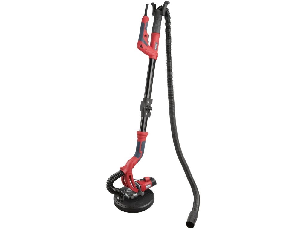 Brúska na sadrokartón je určená na brúsenie povrchu stien a stropov vnútri suchých stavieb aj mimo nich. Cieľom je napríklad zabrúsenie zatmelených sadrokartónových dosiek, zahladenie miest s olúpaným náterom, odstránenie zvyškov tapiet a lepidla na stenách atď. Brúsku je nutné používať spolu s priemyselným vysávačom. Napájanie 230 V/50 Hz, voľnobežné otáčky 600 – 1 500 ot./min., priemer brúsneho kotúča 225 mm, unášacieho 215 mm. Priemer koncovky na pripojenie k vysávaču 46/39 mm, dĺžka odsávacej hadice 4 m, dĺžka brúsky bez predlžovacej trubice 1 m, s predlžovacou trubicou až 1,6 m, dĺžka prívodného kábla 4 m. Krytie IP20, trieda ochrany II, hladina akustického tlaku LpA 84 dB(A) ±3, maximálna úroveň vibrácií na hlavnej rukoväti 3,03 m/s². Dodáva sa v plastovom kufríku.