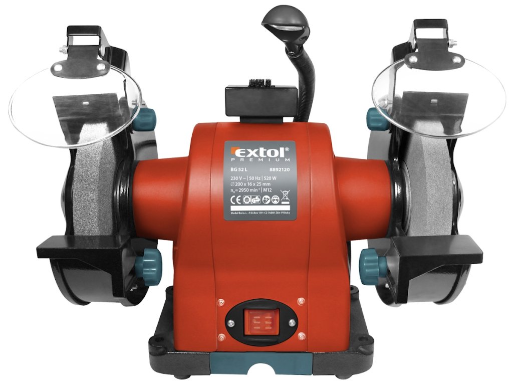 Brúska s nastaviteľným pracovným svetlom, kotúče: 200 × 25 × 16 mm, hrubosť P36 & P80.