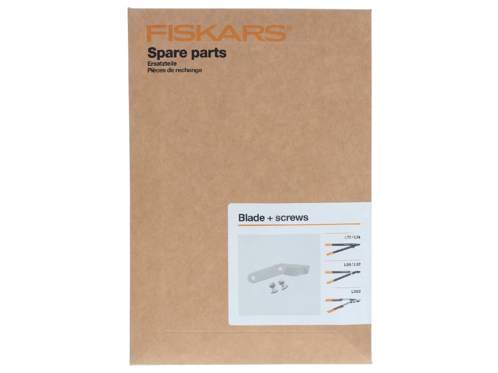 Čepeľ a skrutky pre: nožnice s hrubými vetvovými nožnicami, nožnice na ozubené kolieska, hákové hlavice (S) L70 (Fiskarsovo číslo 1002104) a (M) L74 (Fiskars číslo 1000582), nožnice pre silné vetvy z dvojlistovej ocele PowerGear Steel (S) L90 (Fiskars číslo 1001552) a L92 (Fiskars číslo 1001551), nožnice pre silné vetvy dvojlistové PGX (S) LX 92 (Fiskars číslo 1020186).