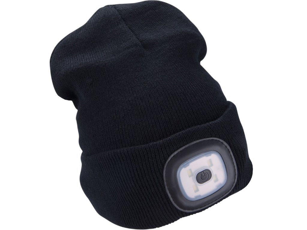 Čepice s čelovkou 4 × 45 lm, USB nabíjení, černá, univerzální velikost