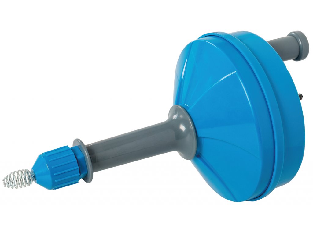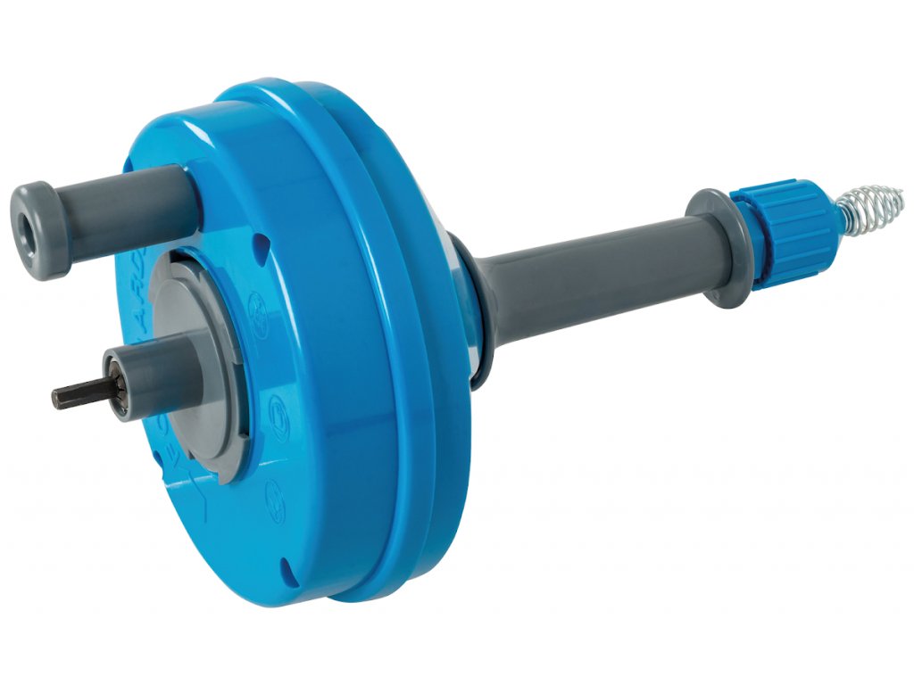 Vysoko odolný polypropylénový bubon s výsuvným oceľovým prútom pre rozbitie a odstránenie tvrdých upchávok v domácich kanalizáciách. Výsuvný prút s rozmermi 6 m × 6 mm je vybavený priamym šnekom s priemerom 14 mm a možno ním otáčať pomocou kľuky alebo el. skrutkovača. Ručne sa zavádza do odpadu bez znečistenia okolitých povrchov. Použiteľné so všetkými el. skrutkovače a vŕtačkami sa šesťhranným skľučovadlom 6 mm.