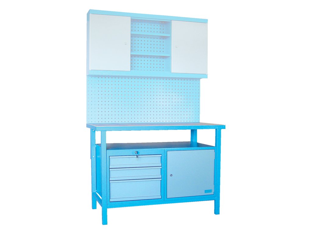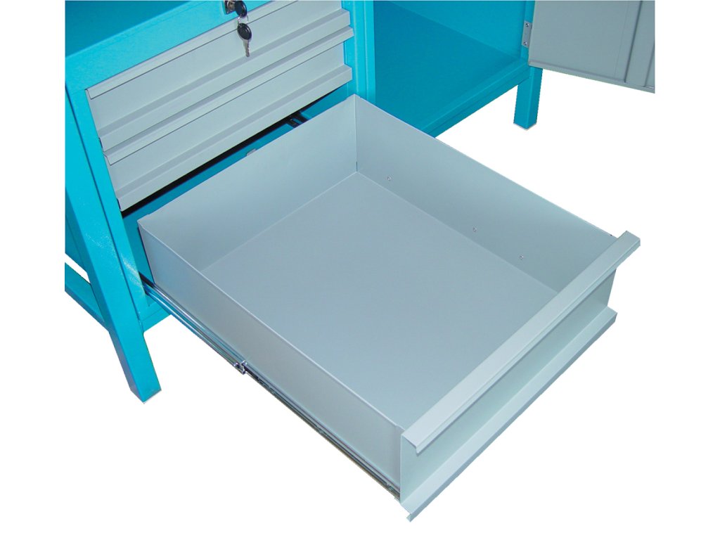 Kovové časti s povrchovou úpravou práškovým lakom, farba: RAL 5015 (korpus), RAL 7001 (dvierka, zásuvky).