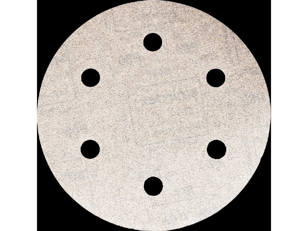 Vhodný na suché brúsenie, s odsávacími otvormi Ø 17 mm. Podklad latexový papier, zrno ALOX, spojivo živica, rozptyl zrna otvorený, stearátová vrstva proti zanášaniu, prichytenie suchý zips.