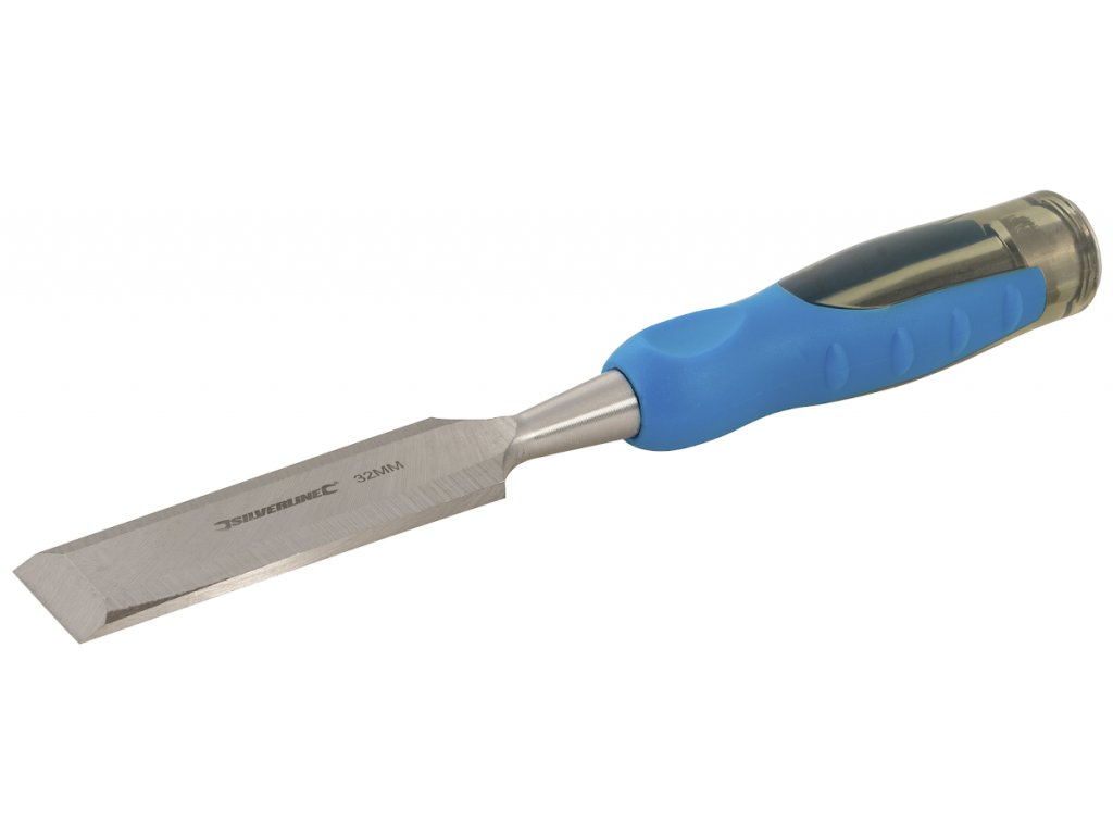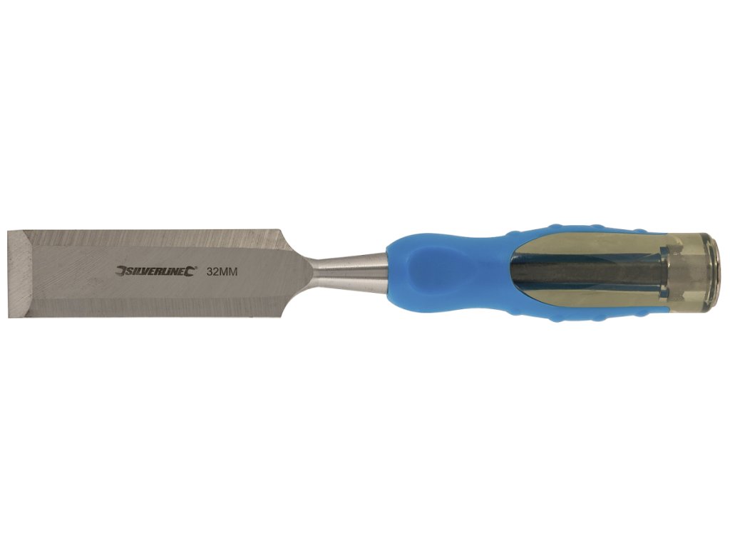 Rovné dláto z kalenej ocele s priebežným telom, rukoväťou soft-grip a zošikmenými hranami noža. Šírka 32 mm. Dodáva sa s chráničom ostria.