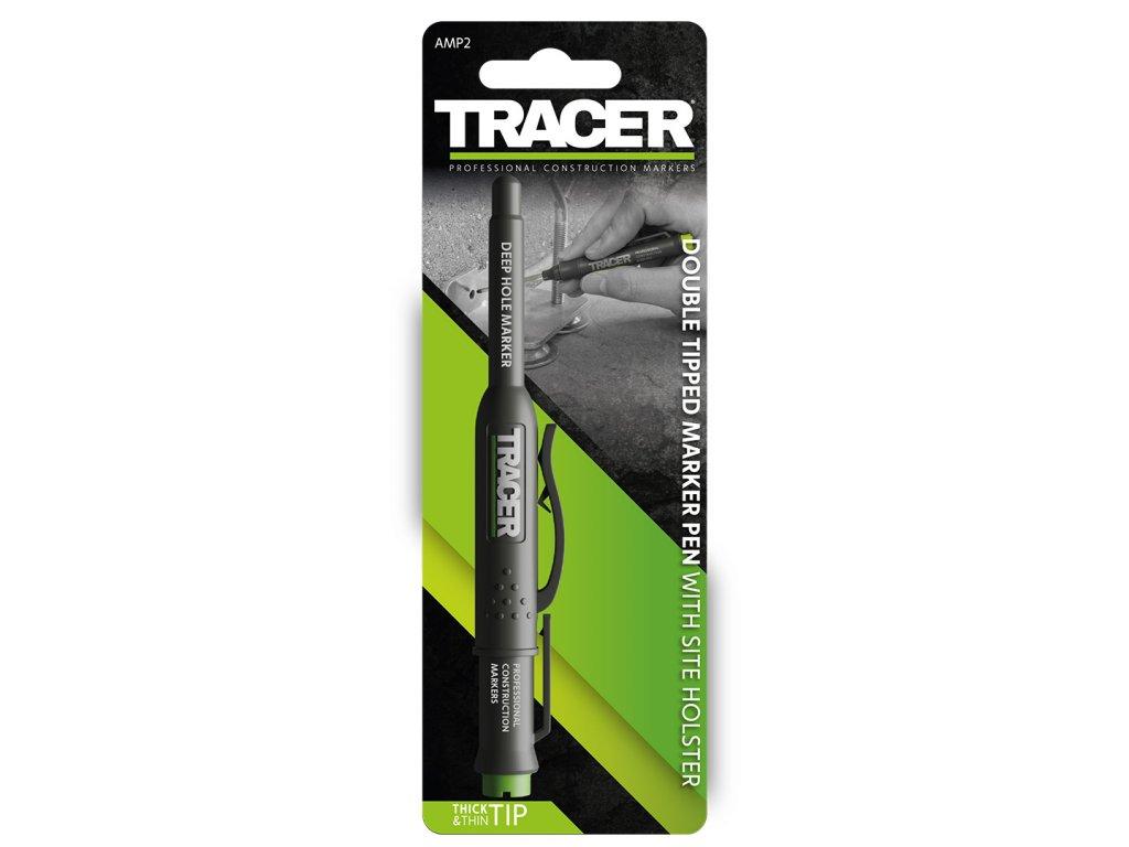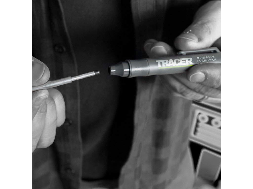 Unikátny dizajn remeselníckeho značkovača Tracer má obojstranný hrot, ktorý je možné obracať tak, aby vám umožnil značenie tenkých aj silných čiar jediným perom. Viečko s háčikom slúži zároveň ako puzdro, vďaka ktorému môžete s popisovačom rýchlo a jednoducho manipulovať. Dokáže písať na väčšinu suchých povrchov, bez ohľadu na to, či sú lesklé alebo hrubé.