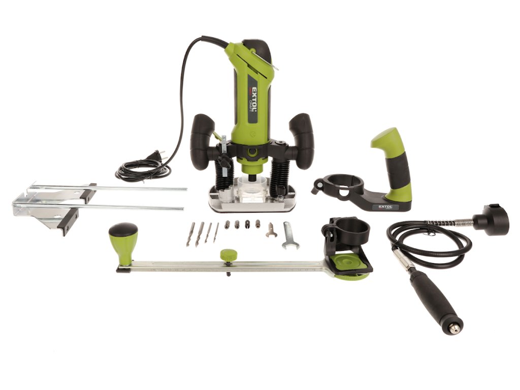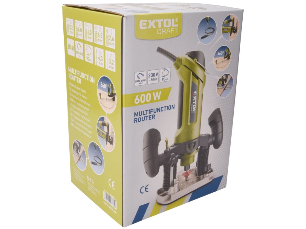 Ideálny nástroj na renovácie a údržbu interiérov alebo bežné práce v domácnosti. V jednom balení dostanete frézku, priamu brúsku a vyrezávač kružníc. Tento stroj má 10-krát vyššie otáčky než bežná vŕtačka a vďaka priloženým frézam s ním môžete rezať a tvarovať rôzne typy materiálov (drevo, drevené podlahy, drevotrieska, sadrokartón, plast, tenký hliník, akrylát, sklolaminát apod.). Napájanie 230 V/50 Hz, príkon 600 W, voľnobežné otáčky 10 000 – 30 000 ot./min., upínacie klieštiny s priemerom 3,2; 4; 6 a 6,3 mm.