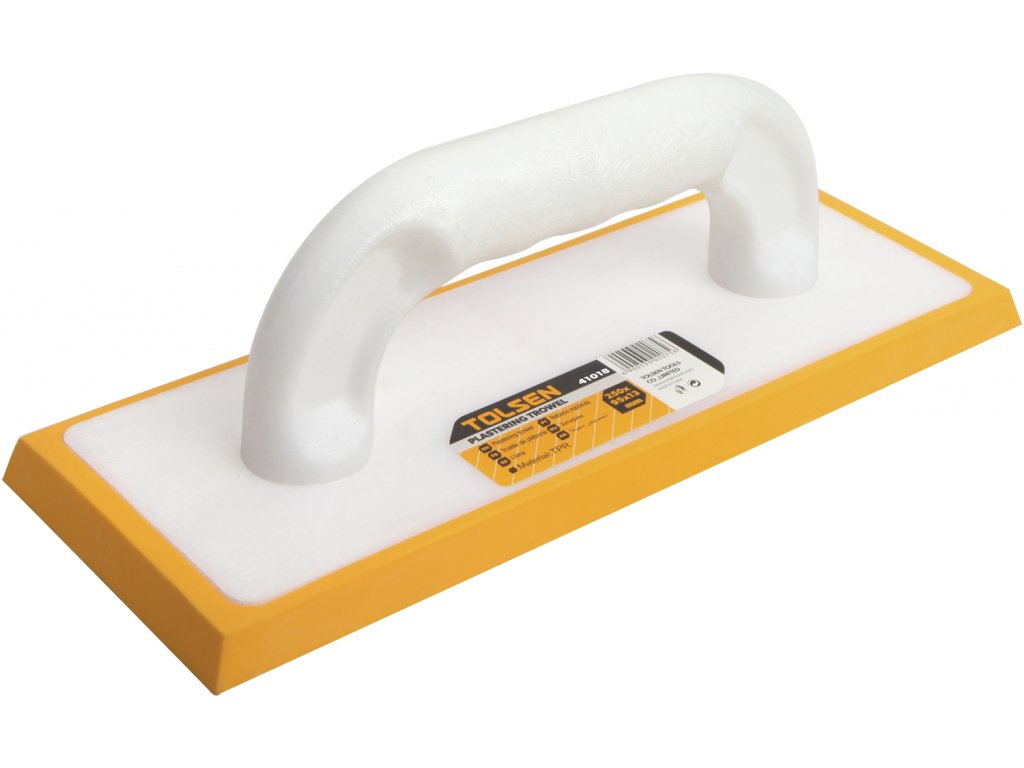 Materiál: TPR (termoplastická guma), plastová rukoväť, rozmery 250 × 95 × 13 mm. Určené na finálnu úpravu štukovej omietky.