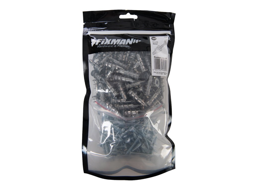 Hmoždinka s skrutkou do sadrokartónu 12 × 32 mm - 100 ks kovová Fixman