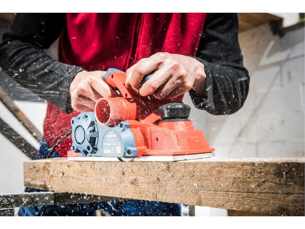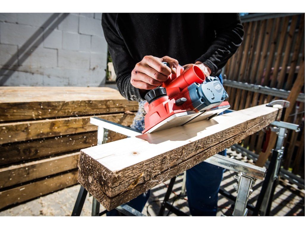 Veľmi silný hoblík s hobľovacou šírkou 110 mm je určený na hobľovanie, zrážanie a drážkovanie dreva, napr. trámov a dosiek. Môžete s ním hobľovať 0 - 3 mm pri jednom prieťahu a hĺbka úberu sa nastavuje po 0,25 mm. Pri hobľovaní polodrážok môžete využiť rozsah 0 až 8 mm. Na hobľovacej doske sú dve rôzne hlboké drážky slúžiace na jednoduché zrážanie hrán a sklopný ochranný tŕň, ktorý chráni pri prerušení práce, nože a plochu pod hoblíkom proti poškodeniu. Pokiaľ preferujete prácu bez tohto ochranného tŕňa, môžete ho jednoducho zaistiť v doske, aby sa nevyklápal. Na udržiavanie čistého pracovného priestoru je možné k hoblíku pripojiť odsávanie z pravej alebo ľavej strany.