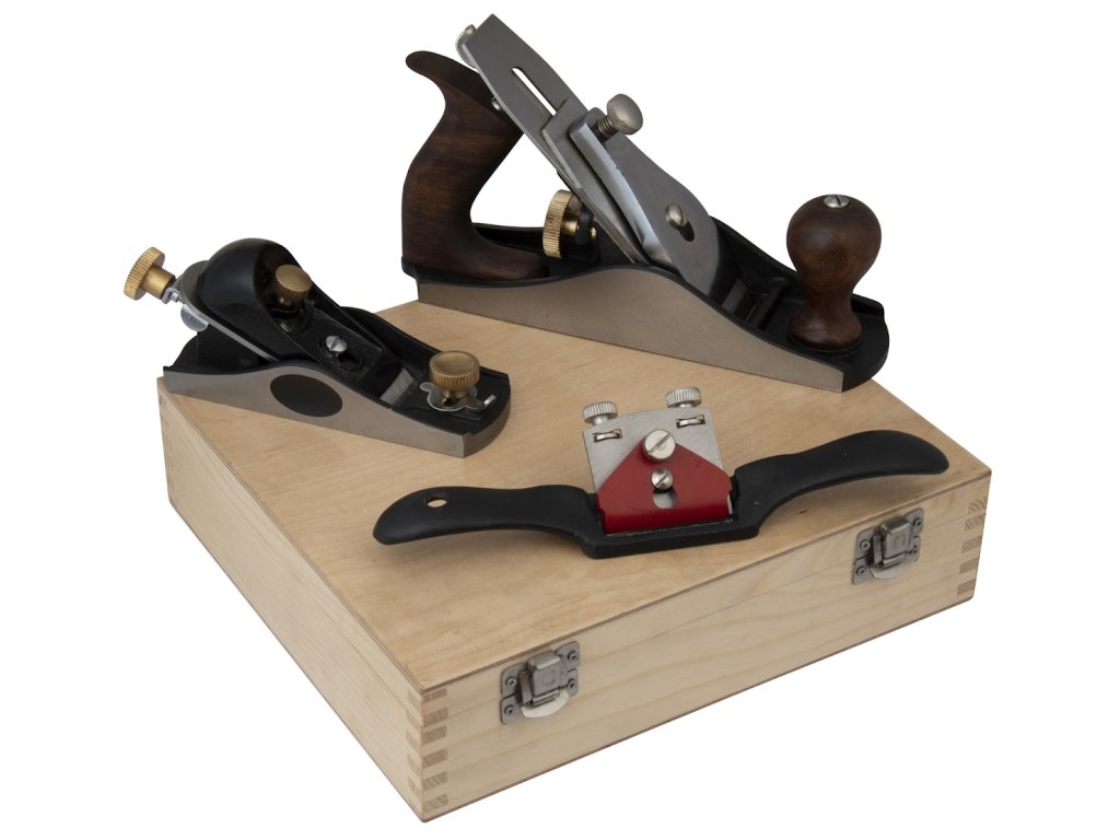 Súprava obsahuje základné zloženie ručných hoblíkov. Sú vyrobené z liatiny, ktorá je doplnená reznými nástrojmi z uhlíkovej ocele. Klasický hoblík, šírka noža 50 mm, je vybavený skrutkou na plynulé nastavenie noža a pákou na jeho naklápanie do strán. Malý hoblík, šírka 40 mm, obsahuje okrem toho plynulé nastavenie obmedzovača triesky. Ten umožňuje jej prispôsobenie na rôzne hrúbky. Úzka štrbina je určená na finišovanie, široká na rýchle opracovanie materiálu tam, kde ešte nie je dôležitá veľká presnosť. Mosadzné nastavovacie matice sú veľké a pohodlné na obsluhu. Súpravu doplňuje zrovnávací hoblík „lastovička“ so šírkou noža 55 mm.