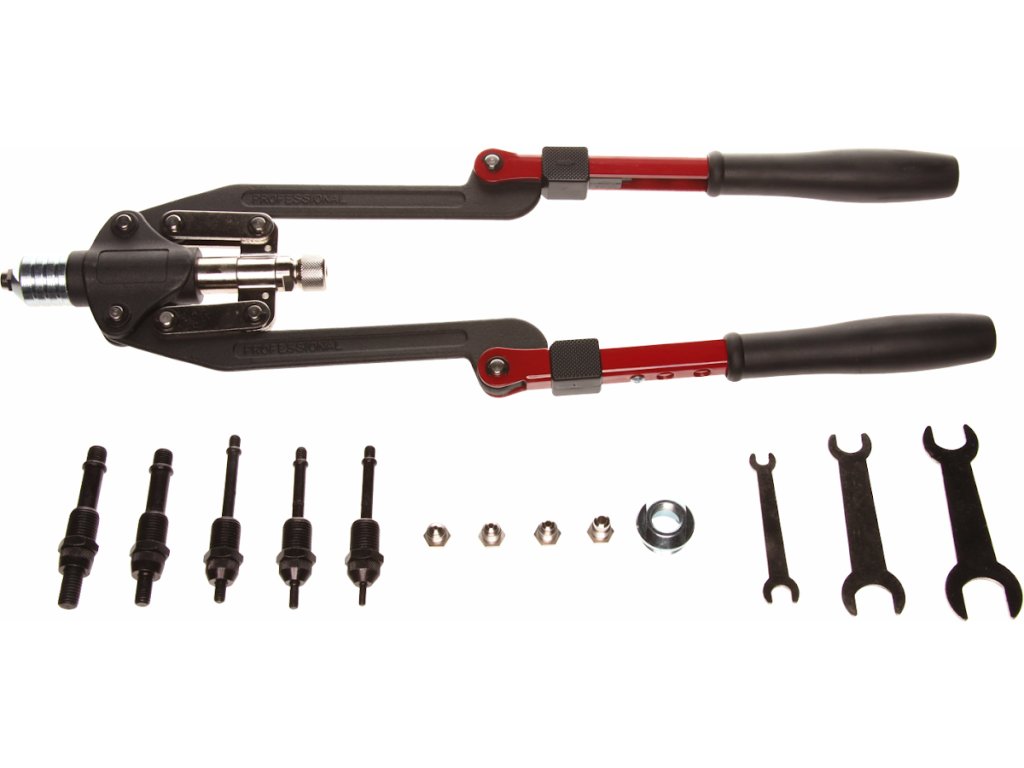 Okrem skladacích nitovacích klieští súprava obsahuje 4 ks klieštin na nity 2,4; 3,6; 4,8; 6,4 mm; 5 ks matríc pre nitovacie matice M4 × 0,7, M5 × 0,8, M6 × 1,0, M8 × 1,25, M10 × 1,5 a 3 ks kľúčov.