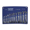Kalené a temperované chrómované kľúče CrV, odolné proti korózii, na ľahký prístup v úzkych priestoroch, 5° nástrčný kľúč, výkyvná hlava 180°. Obsahuje veľkosti: 8, 9, 10, 11, 12, 13, 14, 15, 16, 17, 18 a 19 mm. Dodávajú sa v pevnom nylonovom úložnom puzdre.