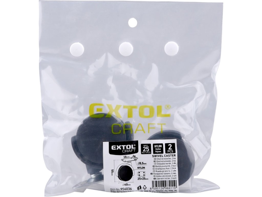 Kolieska otočná nylonová, sada 2 ks, priemer 40 mm so základňou