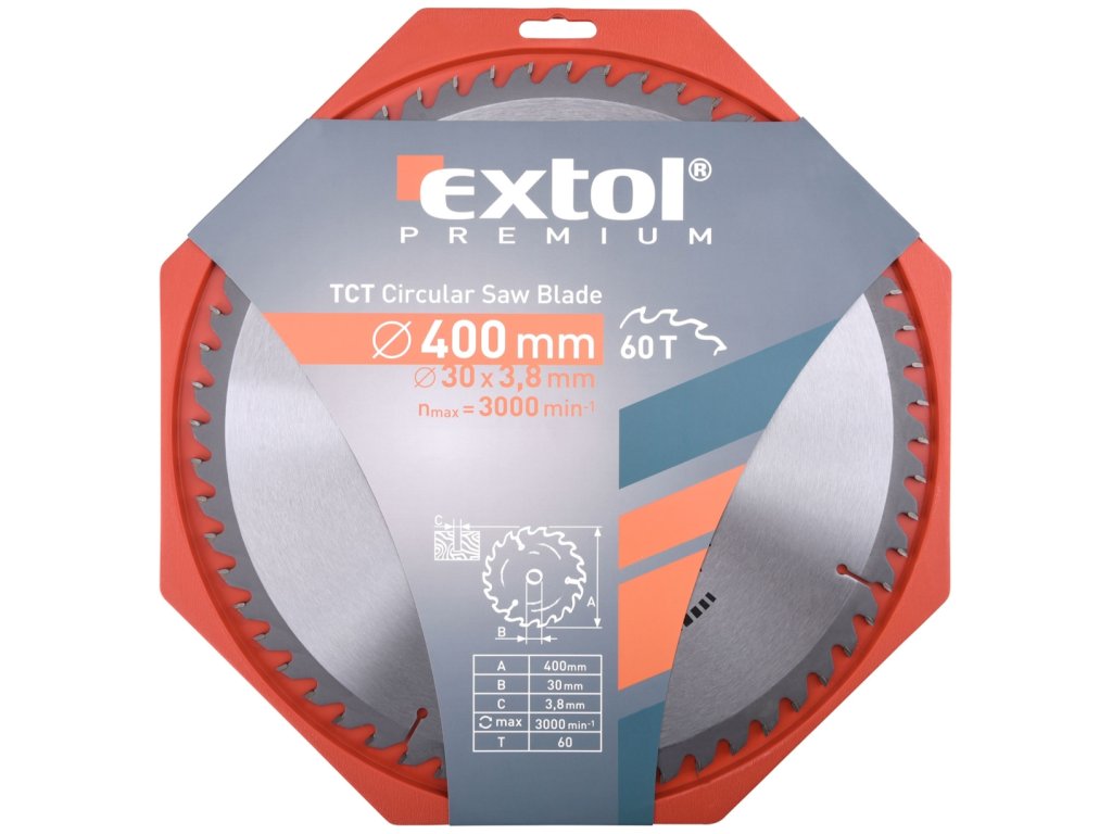 Pílový kotúč s SK plátkami 400 × 2,8 × 30 – 60z, šírka SK plátku 3,8 mm.