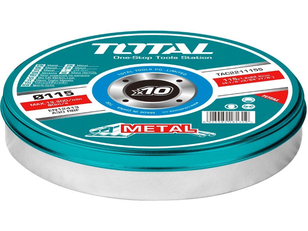 Kotúče rezné na kov, 10 ks, 115 × 1,2 × 22,2 mm