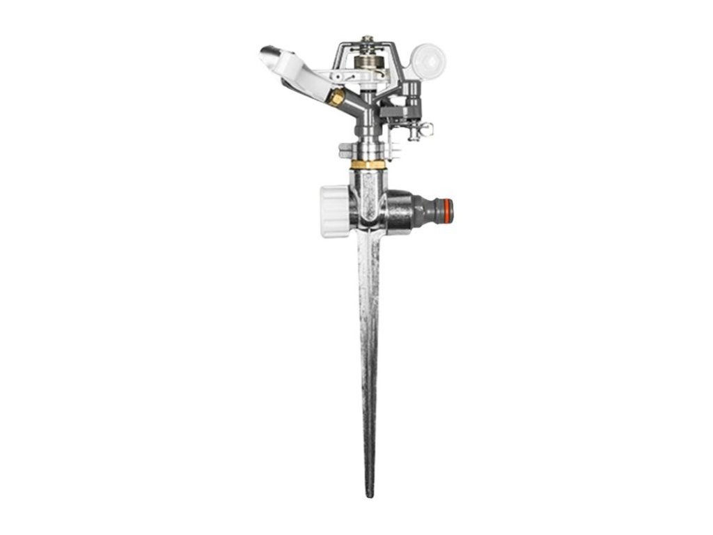 Impulzný zavlažovač zo série WHITE LINE na kovovom hrote sa používa na nenáročné zavlažovanie veľkých plôch. Možnosť nastavenia prietoku vody, pokrytia a vzdialenosti zavlažovanej plochy.