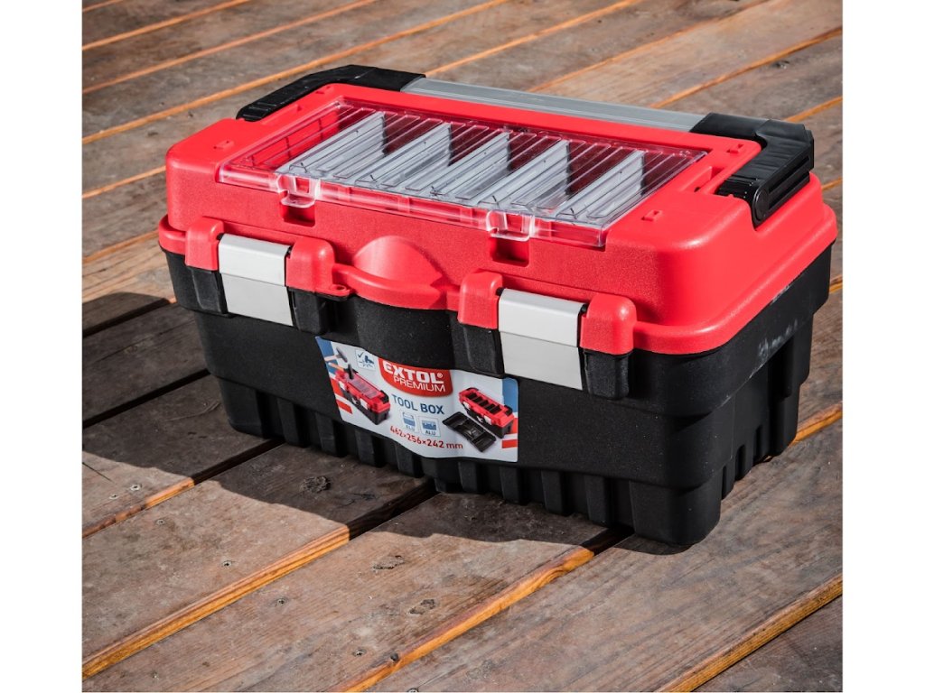 Veľmi odolný číry polykarbonátový organizér, kovové pracky.