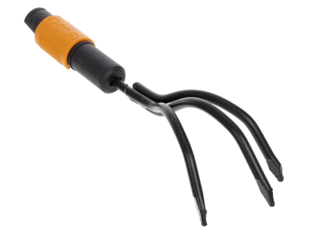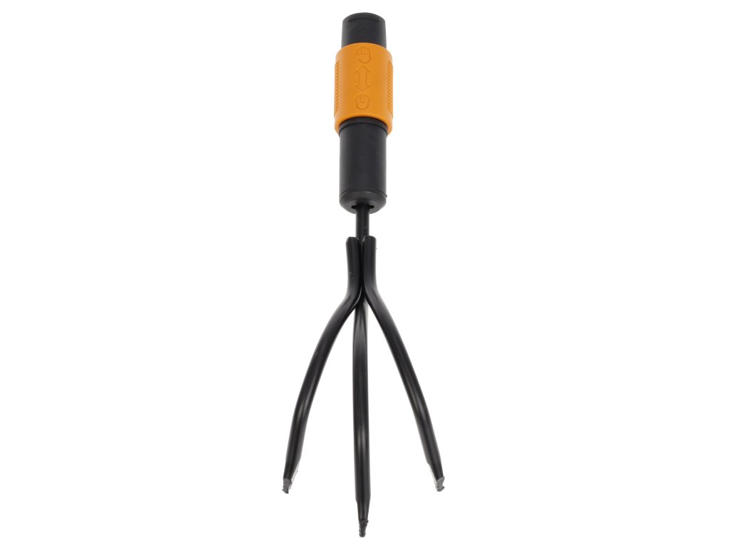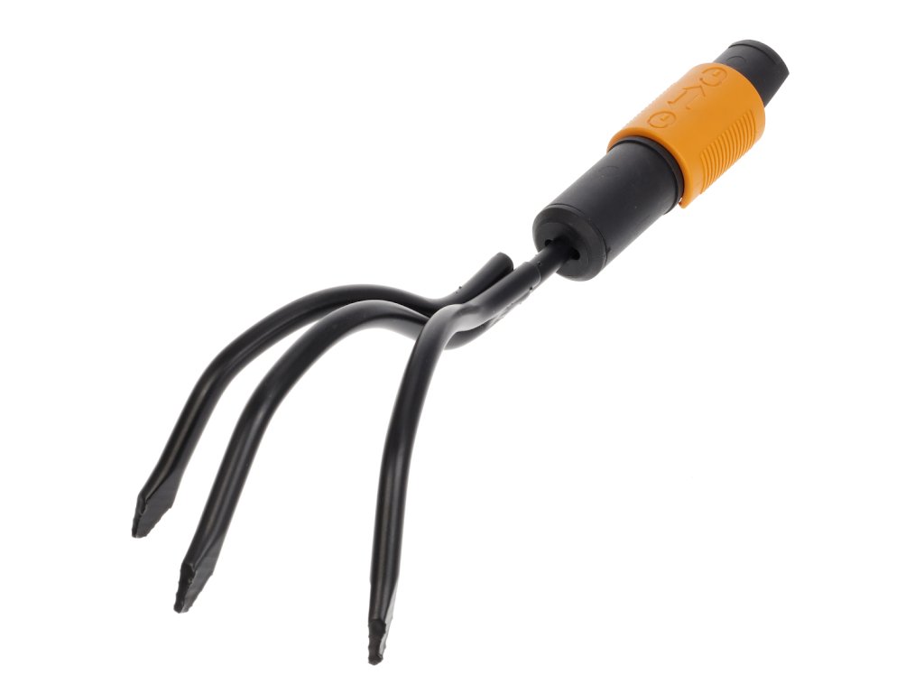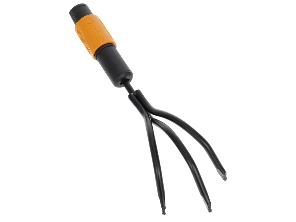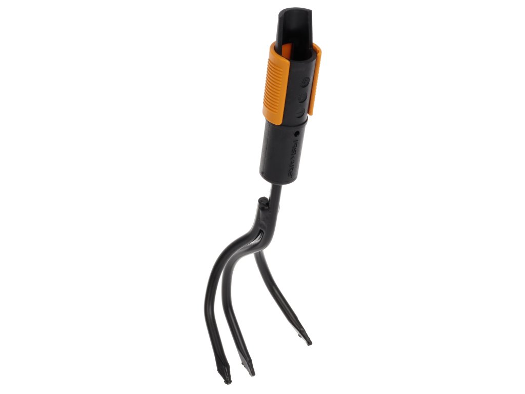 Nový rad nástrojov Quikfit ponúka širokú škálu prídavných zariadení pre všetky druhy záhradných prác. Mechanizmus zámku umožňuje rýchlo a pevne pripevniť príslušný pracovný uchytenie k rukoväti a jednoducho ho znova odstrániť. Kultivátor je vhodný na jemné uvoľnenie pôdy okolo rastlín pre ľahšie hnojenie. Uhlíková oceľ. Pôvodné fiskars číslo: 136515.