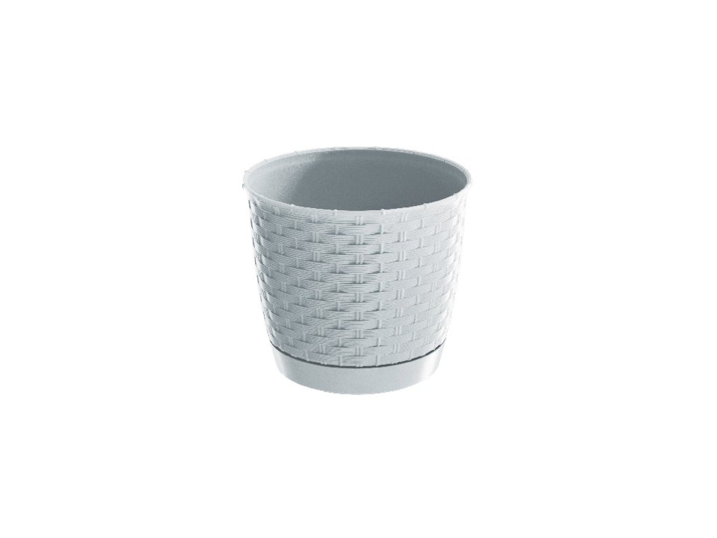 Plastový kvetináč RATOLLA ROUND, ktorý verne napodobňuje ratanovú strunu, je vhodný pre interiéry, terasy a balkóny.
