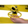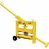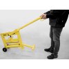 Konštrukcia: masívny oceľový rám, 2dielna páková rukoväť, pružiace podložky lámaného materiálu, závesná skrutka, transportné kolesá.