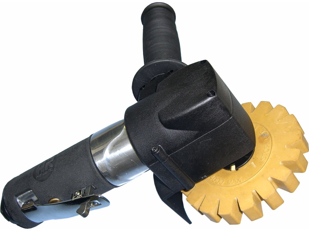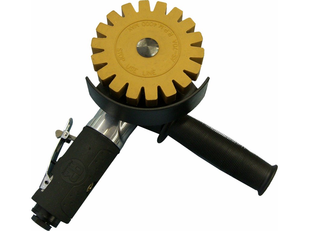 Leštička na prípravu povrchov, špeciálne navrhnutá na odstraňovanie nalepených fólií. Pomocou hladkých alebo ozubených kotúčov zo špeciálnej gumy je možné ľahko odstraňovať fólie nalepené na karosériách a iných hladkých povrchoch. Perfektné držanie je zaistené prídavnou rukoväťou a eliminuje možnosť skĺznutia. Vybavené bezpečnostnou zámkou spúšte, aby sa zabránilo náhodnému spusteniu. Odvod vzduchu spodkom okolo prípojky. Rýchlosť 3 600 ot./min., maximálny pracovný tlak 9 bar.