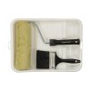 Sada obsahuje akrylový valček s dlhším vlasom a rukoväťou, vhodný na nerovné Porch, omietky, murivo a betón, štetec 100 mm a maliarsku misku 250 mm s textúrou.