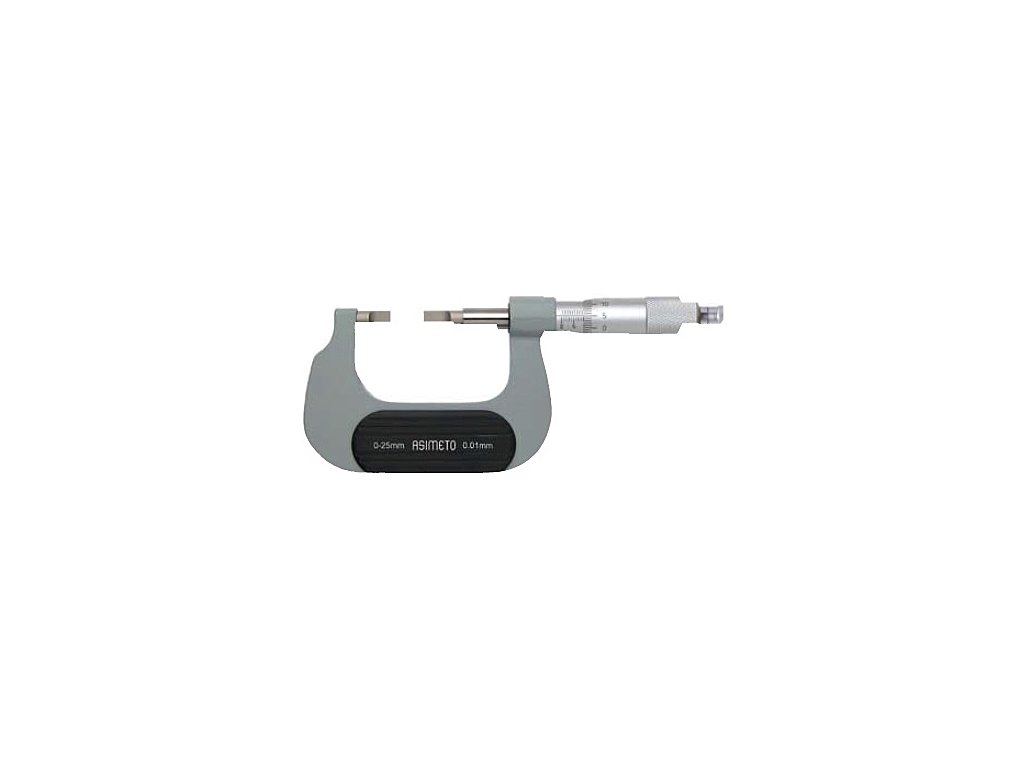 Analógový mikrometer na meranie vonkajších drážok a iných ťažko prístupných plôch, s rapkáčom a pevným, nerotačným vretenom a oceľovým lakovaným rámom. Základné príslušenstvo: záručný list, návod na použitie, kalibračný certifikát, plastové puzdro.