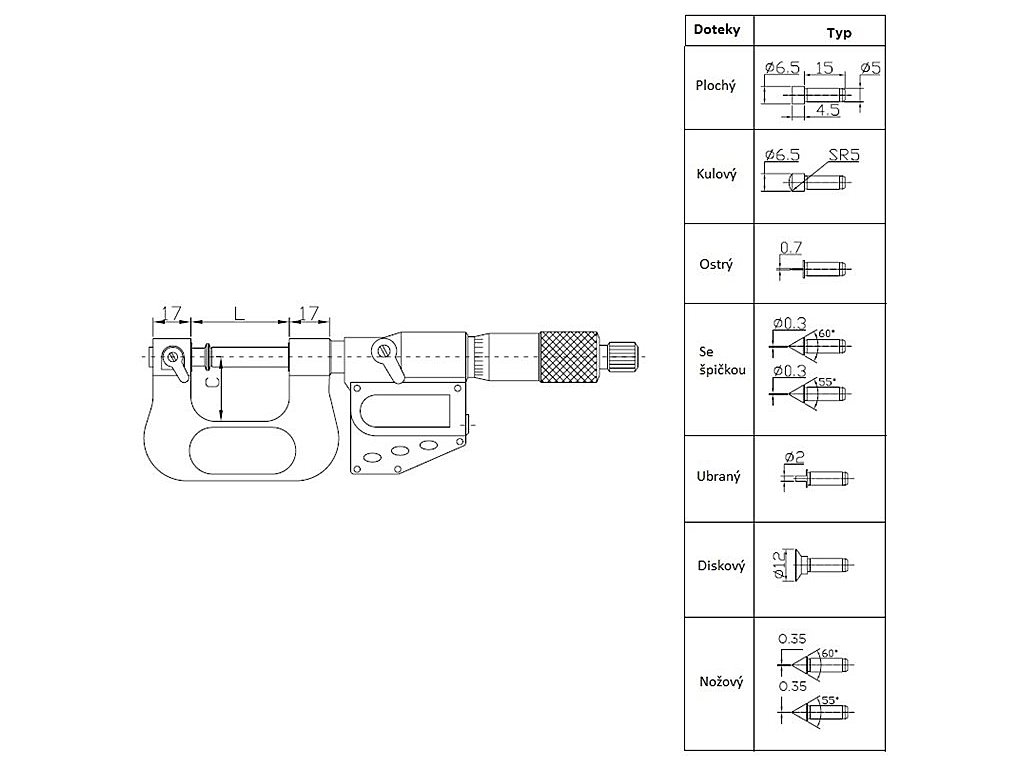 Digitálny mikrometer s rapkáčom, lakovaným oceľovým rámom, s úrovňou ochrany IP65, so siedmimi pármi kontaktných plôch – na širokú škálu meraní. Displej po zapnutí zobrazuje meranie v absolútnej hodnote, ale je možné prepnúť na meranie v relatívnej hodnote. Okrem toho je možné prepínať aj medzi metrickým a palcovým meraním. Automatické vypnutie batérie predlžuje jej životnosť. Základné príslušenstvo: S kľúč, základná mierka, batéria SR44, 7 párov kontaktných bodov, záručný list, návod na použitie, kalibračný certifikát, plastové puzdro.