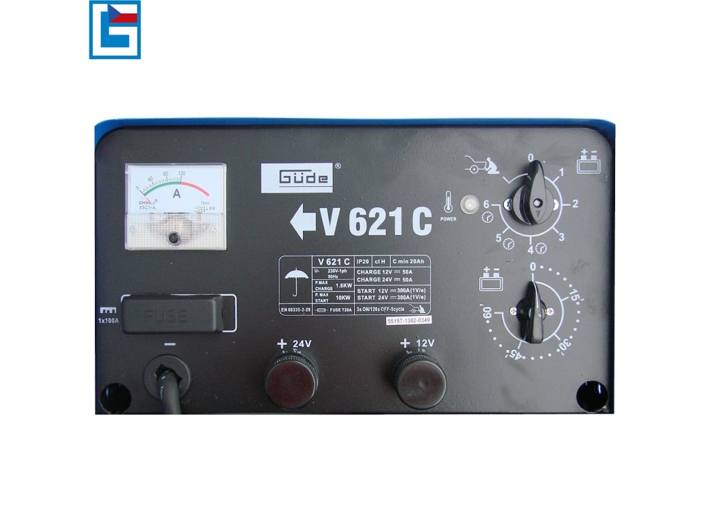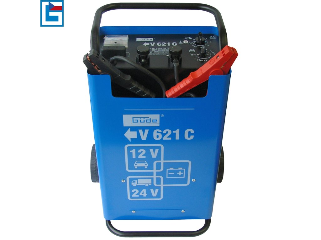 Nabíjačka batérií so štartovacím zdrojom, určená k štandardnému/rýchlemu nabíjaniu olovených akumulátorov motorových vozidiel s napätím 12 alebo 24V.