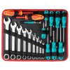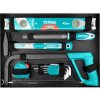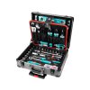 Bohatá sada obsahujúca najrôznejšie ručné náradie od klieští, cez gola sadu až po vodováhu. Všetko uložené v praktickom kurfe s kolieskami a výsuvnou rukoväťou.