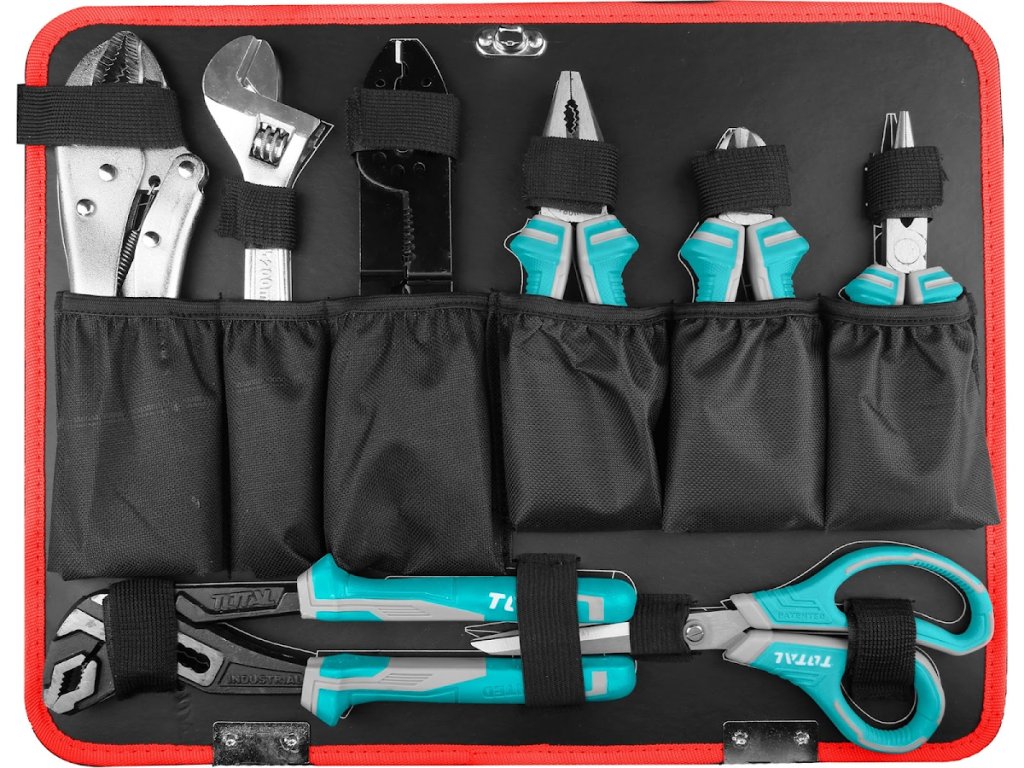 - kliešte: 180 mm kombinované, 160 mm polguľaté priame a 160 mm štiepacie bočné, 1 ks SIKO kliešte 250 mm, 1 ks rýchloupínacie kliešte 250 mm, 1 ks odizolovacie kliešte 200 mm