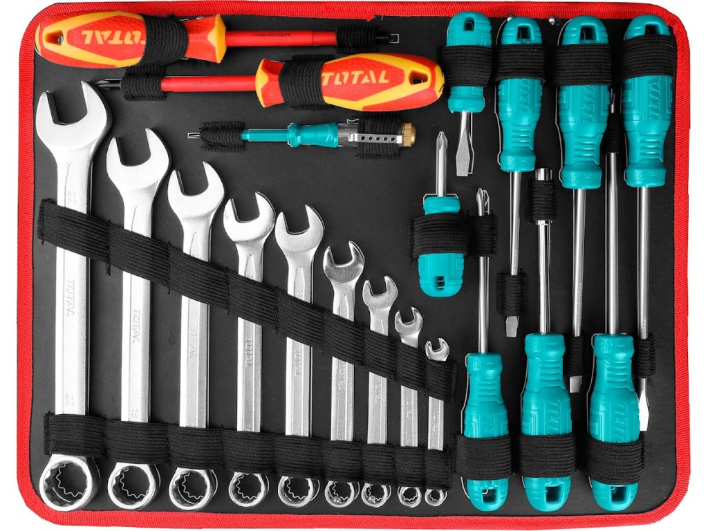 - skrutkovač: SL8 × 50, SL6 × 25, SL5 × 100, SL6.5 × 38, PH2 × 50, PH1 × 100, PH2 × 38, 2 ks elektrikárskych skrutkovačov SL5 × 25 mm, PH2 × 100 mm