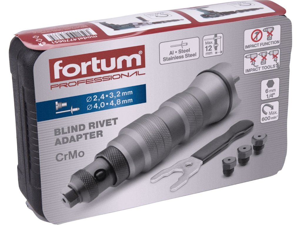 Nástavec nitovací na vŕtačku, pre trhacie nity 2,4 - 4,8 mm, CrMoV