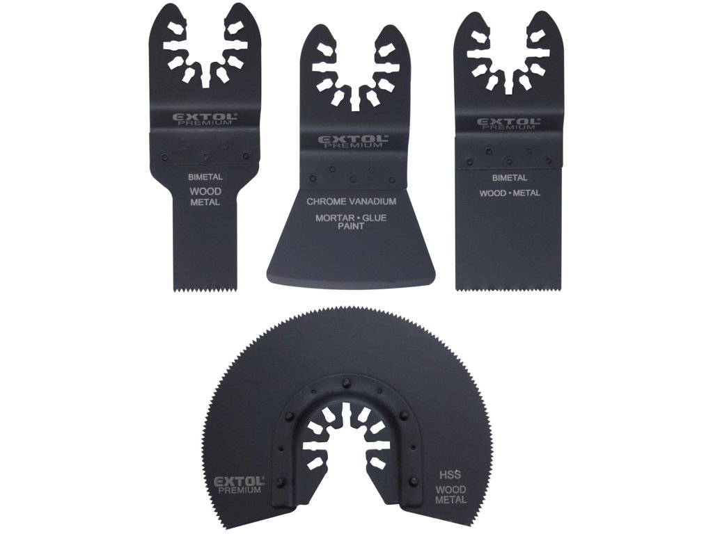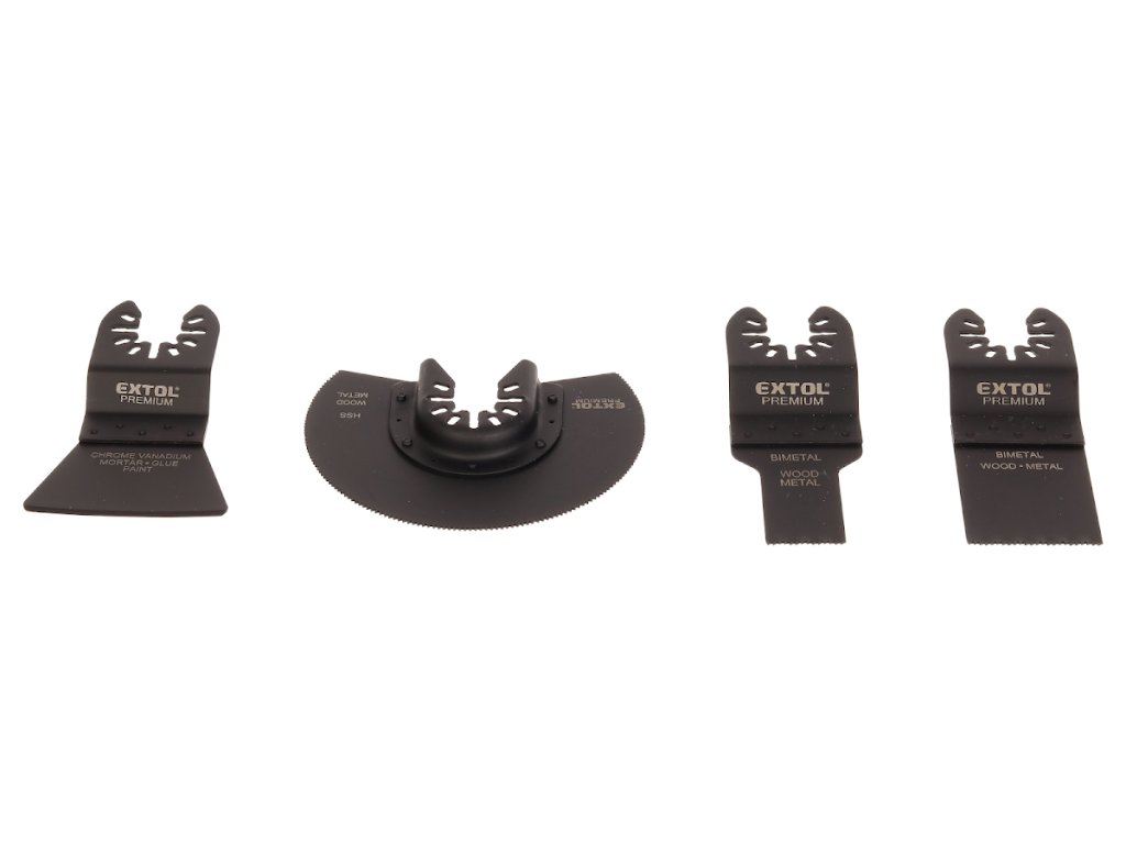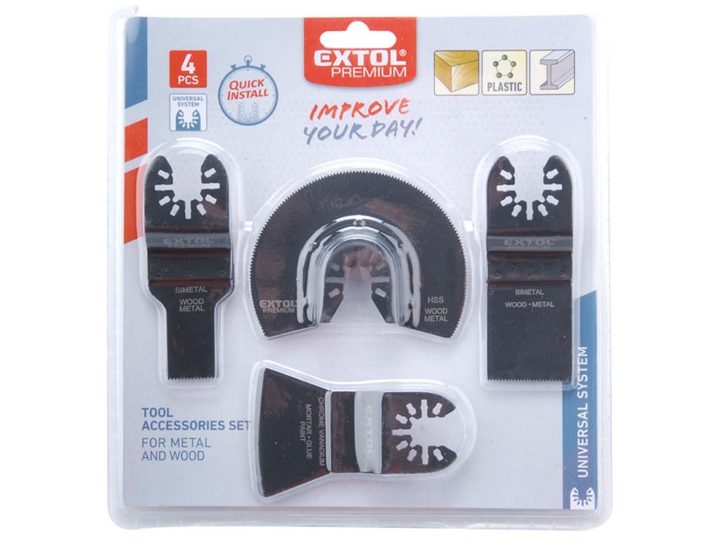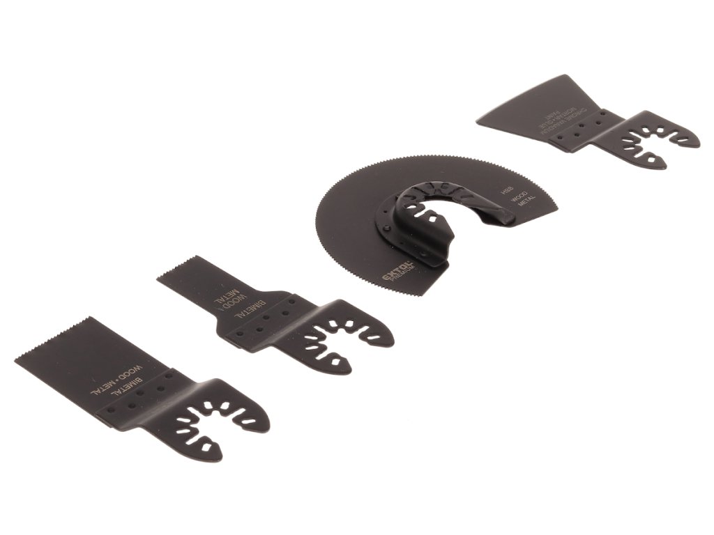 Upínací systém nástrojov umožňuje použitie v oscilačných prístrojoch rôznych značiek, ako je napr. AEG, Black & Decker, Bosch, Dremel, Einhell, Extol, Fein, Makita, Milwaukee, Multi Master, PowerUp, Ridgid, Rockwell, Skil, Worx, Yato a ďalšie. Súprava obsahuje HSS segmentový pílový kotúč s priemerom 88 mm, BIM zanorovacie pílové listy 20 a 34 mm a pevnú stierku 30 mm.