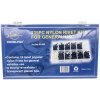 Vhodné na spájanie plastových dielov, upevnenie plastu na kov a plastu na sklolaminát. Nájde uplatnenie najmä v autoopravárenstve. Súprava obsahuje nity s rozmermi (priemer/hrúbka dielov/veľkosť hlavy/počet kusov): 4/6 – 10/15,6 × 8,3 mm/20 ks; 5,1/3,17 – 5/12,3 mm/30 ks; 5,1/3,17 – 4/8,7 mm/35 ks; 5,1/5,9 – 9/12,4 mm/25 ks; 5,9/3,9 – 7/15,8 mm/15 ks; 5,9/4,36 – 8/12,7 mm/20 ks; 6,3/2,4 – 5/16,6 mm/15 ks; 6,3/3,9 – 10/16,6 mm/15 ks; 6,3/3,9 – 10/16,9 mm/15 ks 6,3/7,9 – 11/16,6 mm/15 ks a 7,1/7,9 – 11/16,6/15 ks. Dodávajú sa oddelene uložené v plastovej kazete.
