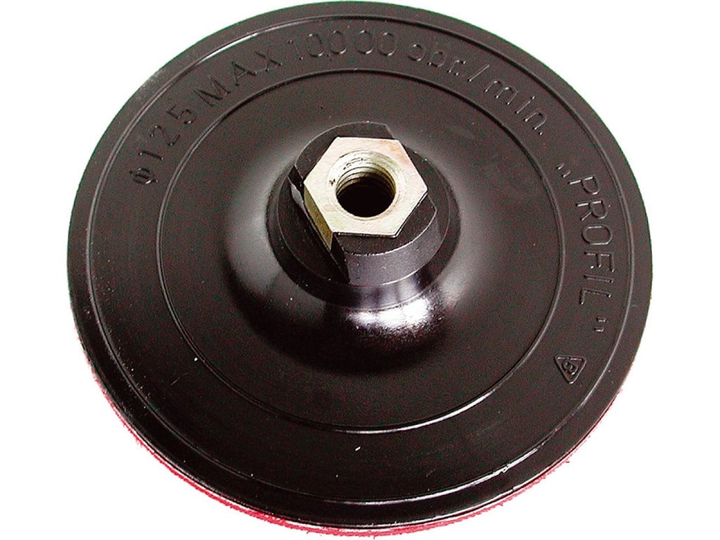 - tvrdší neohybný tanier nosiča pre brúsne Výseky s VELCRO, závit M14 na uchytenie v uhlovej brúske