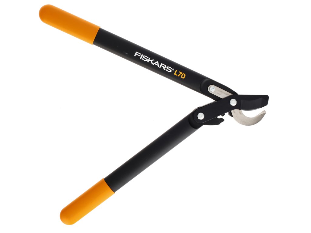 Nožnice pre silné vetvy s fiskars výstrojom majú dokonale zaostrenú čepeľ. Čepeľ je potiahnutá posuvnou vrstvou PTFE, rezaná proti spodnej čepeli, ktorá je tvarovaná tak, aby vetva nevychádzala pri rezaní. Nožnice sú vhodné pre čerstvé vetvy. Ľahko uchopte vetvu medzi čepeľami. Max. priemer rezu 38 mm. Dĺžka: 450 mm. Hmotnosť: 490 g. Pôvodné číslo Fiskars: 112190. Označenie: (S) L70