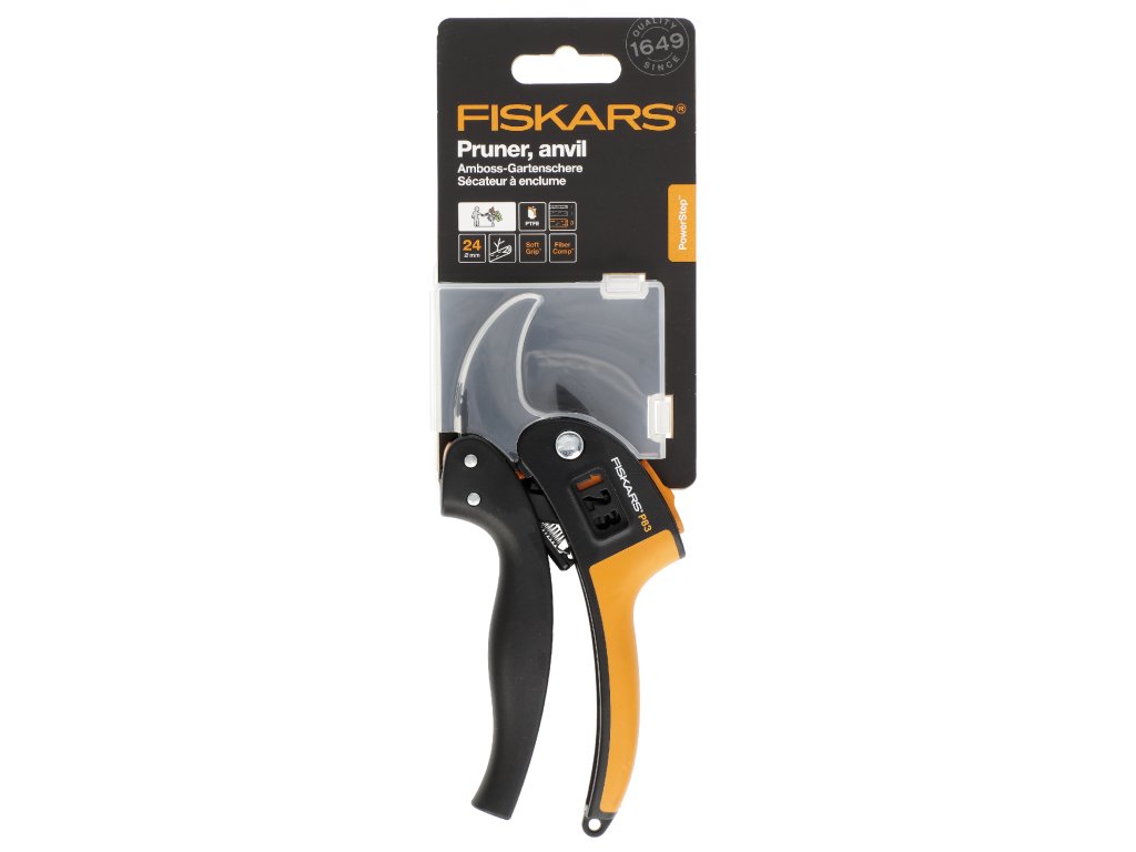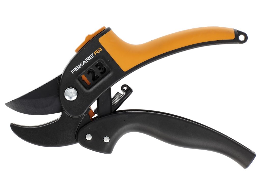 Patentovaná technológia PowerStep™ vám umožňuje rezať vetvy v jednom, dvoch alebo troch krokoch, samotné nožnice si vyberajú najvhodnejšie nastavenia podľa priemeru reznej vetvy. Vrchná čepeľ potiahnutá posuvnou vrstvou PTFE. Zámok. Pre pravú aj ľavú ruku. Max. priemer rezu 20 mm. Dĺžka: 180 mm. Hmotnosť: 140 g.Pôvodné číslo Fiskars: 111670. Označenie: P83