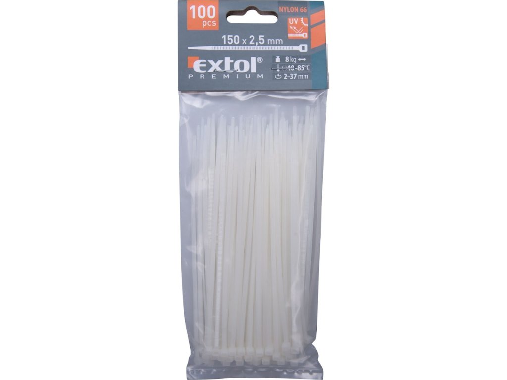 Pásky stahovací na kabely bílé, 150 × 2,5 mm, 100 ks, nylon PA66