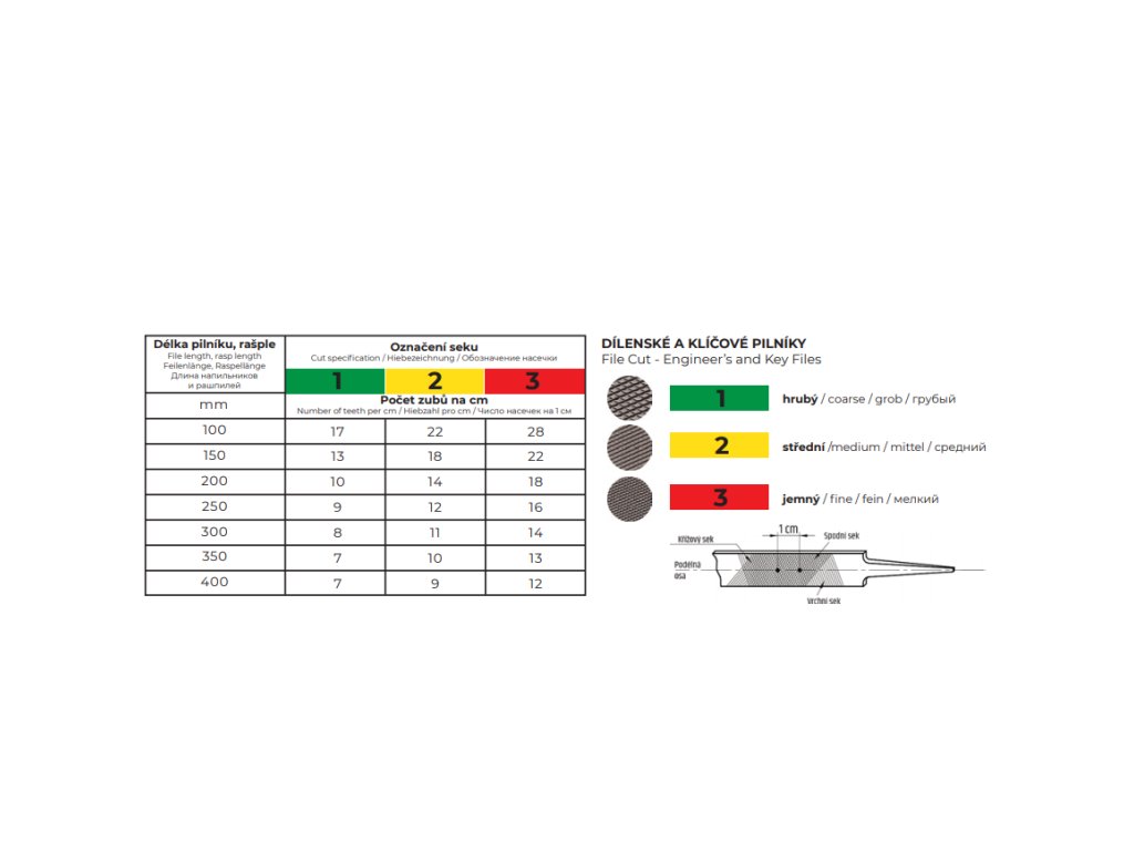- dielenský pilník na bežné pilovanie v zámočníckych dielňach, vo výrobe aj v domácnosti