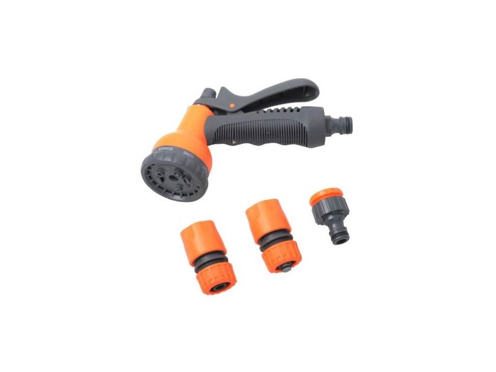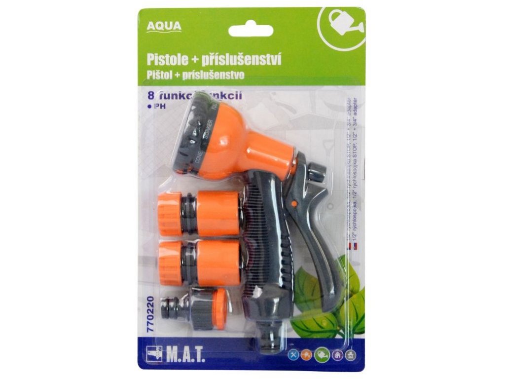 Sada plastovej pištole s 8 funkciami a príslušenstvom AQUA je ideálnym doplnkom záhradnej hadice.