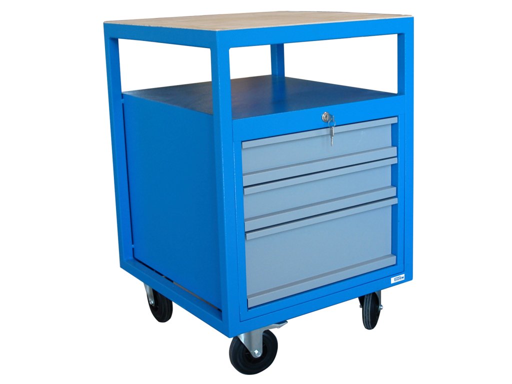 Pojazdný kontajner s univerzálnym využitím v domácich/servisných dielňach, výrobných prevádzkach a pod., rozmerovo kompatibilný s pracovným stolom P 1200 S (40920).