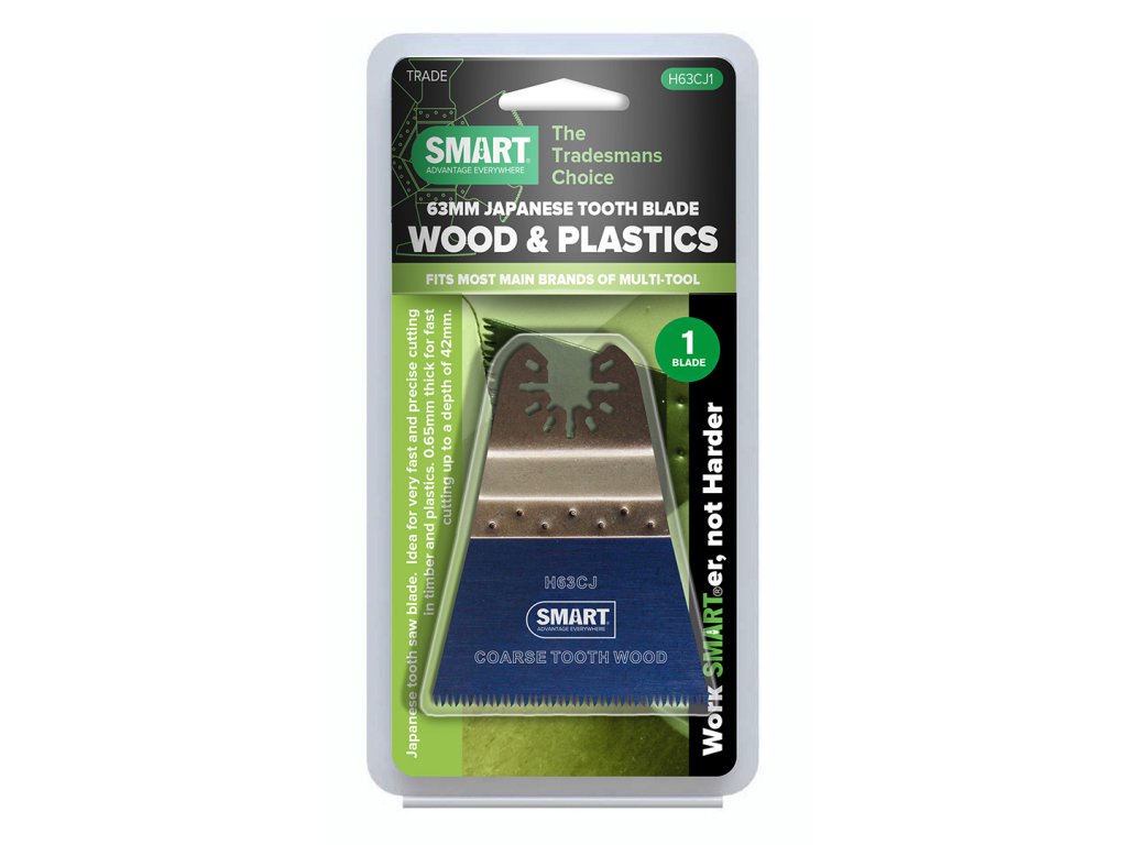 Pílový list vyrobený vo Veľkej Británii z Chróm-vanádiovej ocele. Japonské ozubenie zaručí rýchly, presný a efektívny rez do dreva a plastu. Hrúbka listu iba 0,65 mm. Šírka listu 63 mm. Značka SMART vyrába jedny z najlepších čepelí pre multifunkčné oscilačné píly na svete a ako jediná značka na trhu ponúka kombináciu vlastných čepelí s patentovaným uchytením STARLOCK.