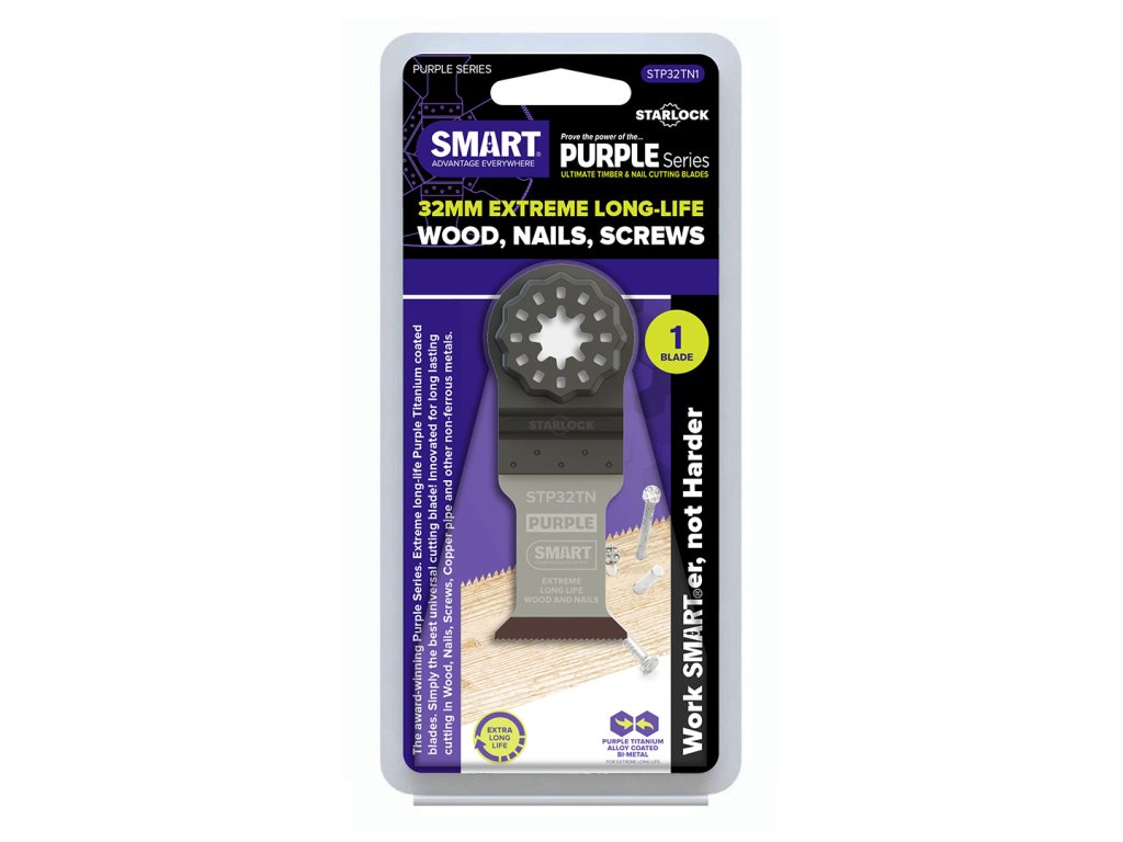 Špičková titánová čepeľ vyrobená vo Veľkej Británii. Patentované uchytenie STARLOCK. Najvyššia kvalita a extrémne vysoká životnosť. Určené na rez do dreva, plastu, neželezných kovov a ďalších materiálov. Šírka čepele 32 mm. Značka SMART vyrába jedny z najlepších čepelí pre multifunkčné oscilačné píly na svete a ako jediná značka na trhu ponúka kombináciu vlastných čepelí s patentovaným uchytením STARLOCK.