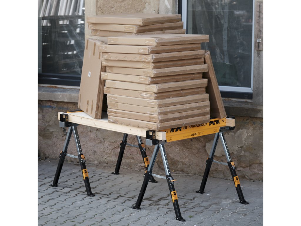 So Strongboldom posuniete vaše pracovné projekty na novú úroveň. H800 sú vhodné ako pre náročných profesionálov, tak aj domácich majstrov, ktorí chcú mať univerzálnu pracovnú plochu vždy so sebou po ruke. Sú vhodné ako na rezanie trámov, tak aj guľatiny či doskových materiálov. Možno na ne bez starostí položiť materiál s vysokou hmotnosťou a behom okamihu ich možno zložiť a kamkoľvek premiestniť.